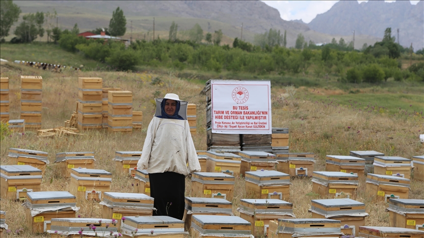 Van'da girişimci Aycan Kanat Gültekin, Tarım ve Orman Bakanlığının "Kırsal Kalkınmada Uzman Eller Projesi" kapsamında aldığı hibe desteği ile arıcı oldu.