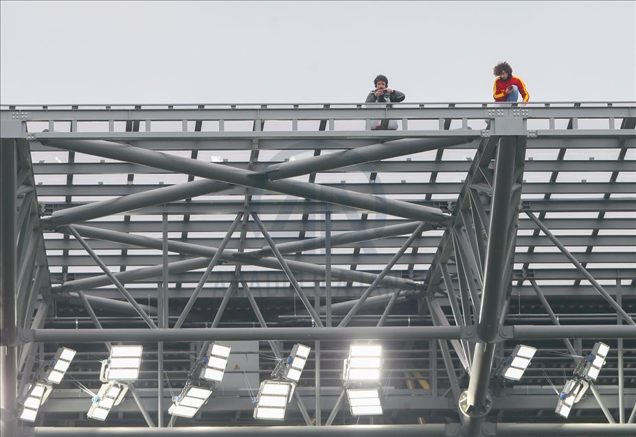Karşılaşmanın ilk yarısı oynandığı sırada bazı taraftarlar Gürsel Aksel Spor ve Sağlıklı Yaşam Merkezi'nin çatısına çıktı.