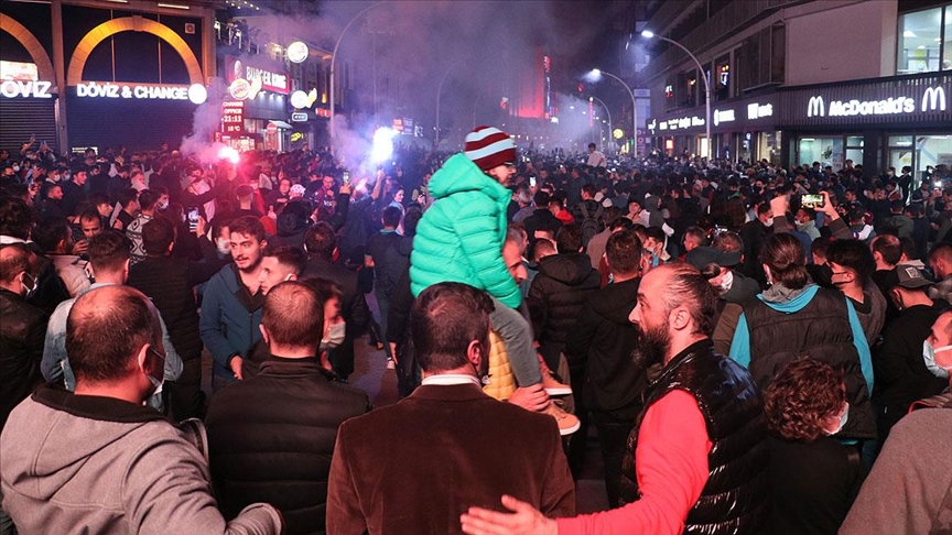 Maçın bitiş düdüğünün ardından Kent Meydanı'nı dolduran bordo-mavili taraftarlar, ellerinde Trabzonspor bayrakları ve meşalelerle galibiyeti kutladı. "Şampiyon Trabzonspor" tezahüratlarında bulunan taraftarlar, zaman zaman yolu trafiğe kapattılar.