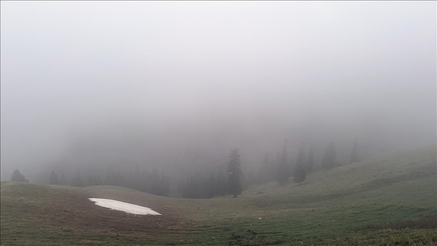 Kentte gün boyunca devam eden sağanak, yüksek kesimlerde yoğun sis ve yer yer kara dönüştü.