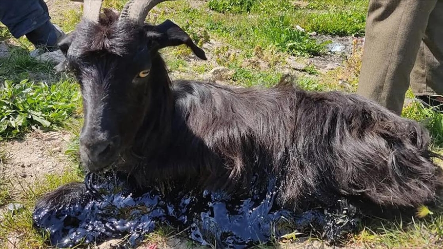 Osmangazi ilçesine bağlı kırsal Avdancık Mahallesi'nde hayvanlarını otlatan çoban, keçilerinden birinin araziye dökülen zifte yapıştığını gördü.