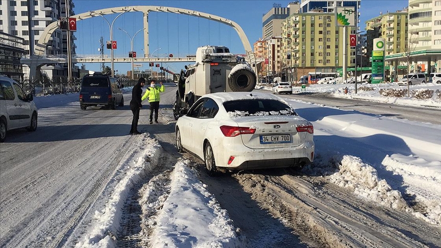 Diyarbakır-Şanlıurfa kara yolunda buzlanma nedeniyle bir aracın ilerlemekte güçlük çektiğini fark eden polis, duruma müdahale etti.