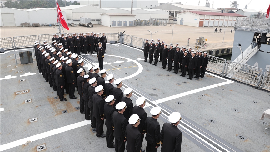 Anlık gelişmeler için AA Canlı Fırkateynin 117 metre boyunda, 3 bin 350 ton tam deplasmanla 32 knota kadar sürat yapabildiğini belirten Türk, "Bu gemiler sahip olduğu imkan ve kabiliyetler ile her türlü görevi tek başına veya diğer savaş gemileriyle yerine getirebilen çok maksatlı fırkateynlerdir." ifadelerini kullandı.