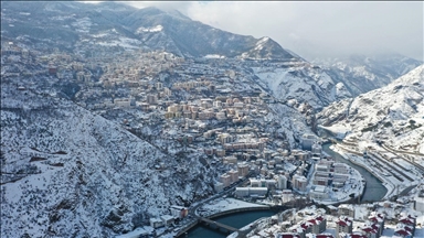 Yüksekova'da etkili olan kar nedeniyle ilçe merkezi beyaza büründü.