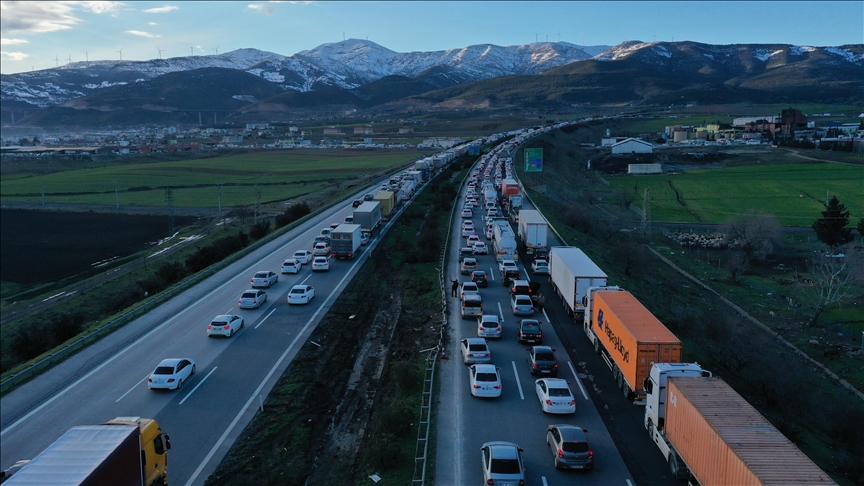Kahramanmaraş merkezli depremlerde hasar gören ve çalışmaların ardından bugün yeniden trafiğe açılan TAG Otoyolu'nda yoğunluk yaşanıyor.