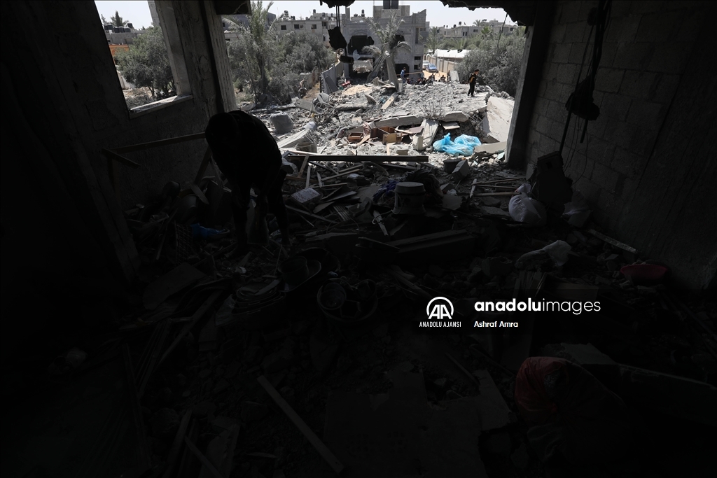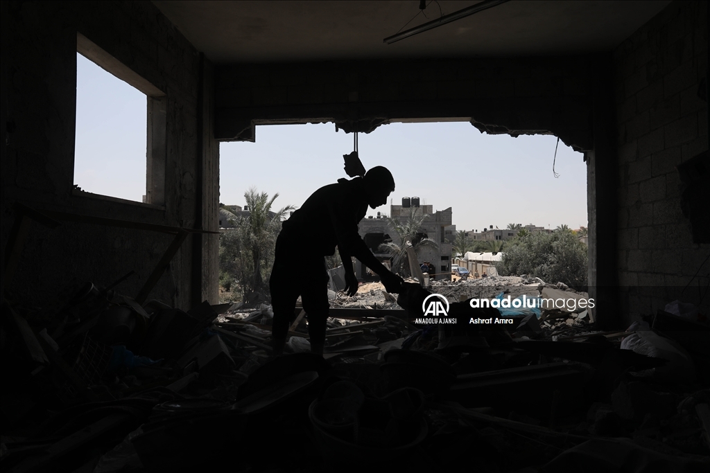 İsrail'in İslami Cihad Hareketinin yönetici kadrosunu hedef aldığını savunarak, 9 Mayıs'ta başlayan ve Gazze'nin çeşitli bölgelerine düzenlediği hava saldırılarında 6'sı çocuk, 3'ü kadın olmak üzere 33 kişi hayatını kaybetti, 32'si çocuk, 17'si kadın 93 Filistinli yaralandı. Ateşkesin ardından abluka altındaki Gazze Şeridi'nin farklı mahallelerindeki yıkılmış ve ağır hasar görmüş binalar görüntülendi. Filistinliler, kullanılabilir durumdaki eşyaları topladı. ( Ashraf Amra - Anadolu Ajansı )Ashraf Amra
