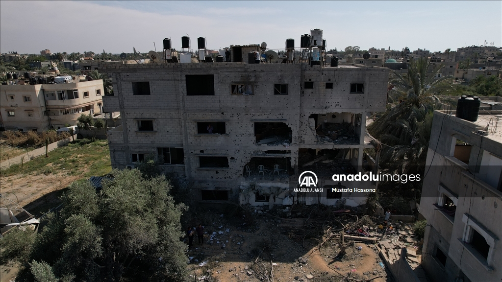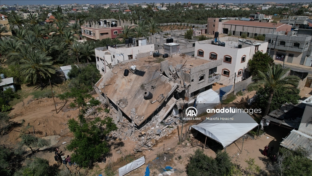İsrail'in İslami Cihad Hareketinin yönetici kadrosunu hedef aldığını savunarak, 9 Mayıs'ta başlayan ve Gazze'nin çeşitli bölgelerine düzenlediği hava saldırılarında 6'sı çocuk, 3'ü kadın olmak üzere 33 kişi hayatını kaybetti, 32'si çocuk, 17'si kadın 93 Filistinli yaralandı. Ateşkesin ardından abluka altındaki Gazze Şeridi'nin farklı mahallelerindeki yıkılmış ve ağır hasar görmüş binalar havadan görüntülendi. ( Mustafa Hassona - Anadolu Ajansı )Mustafa Hassona