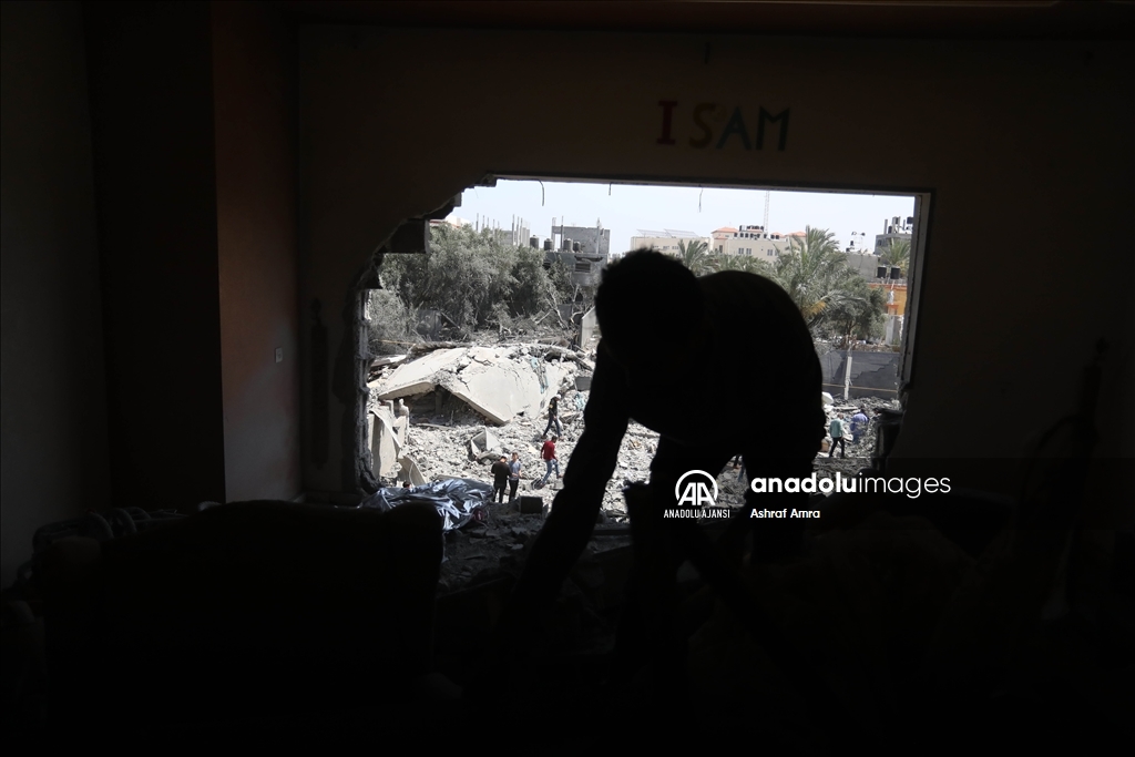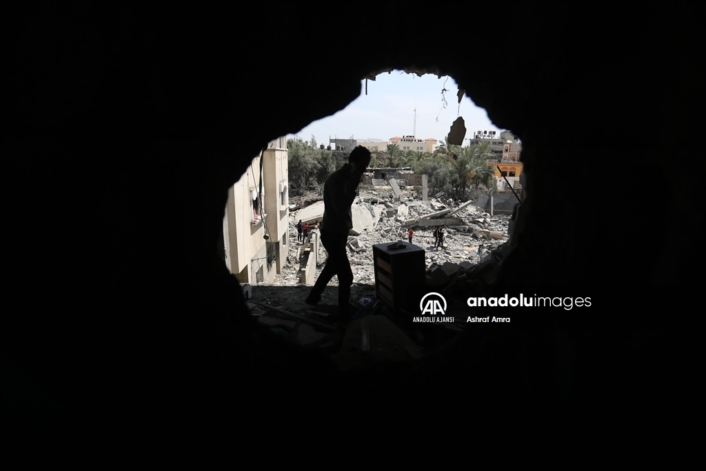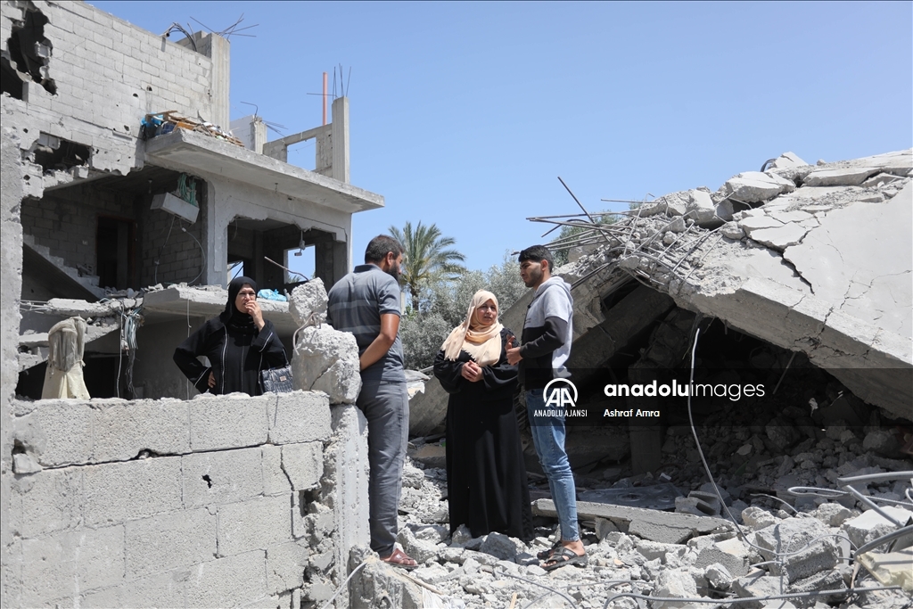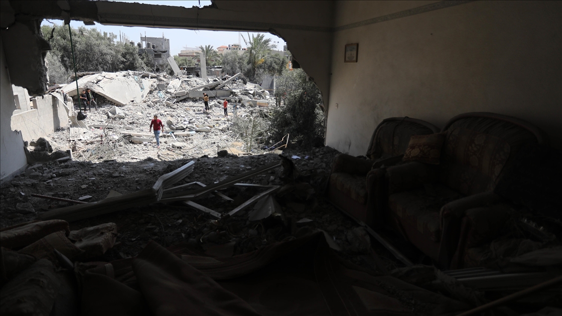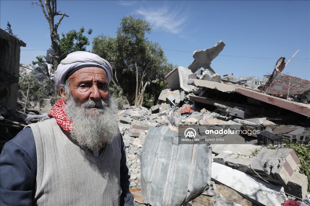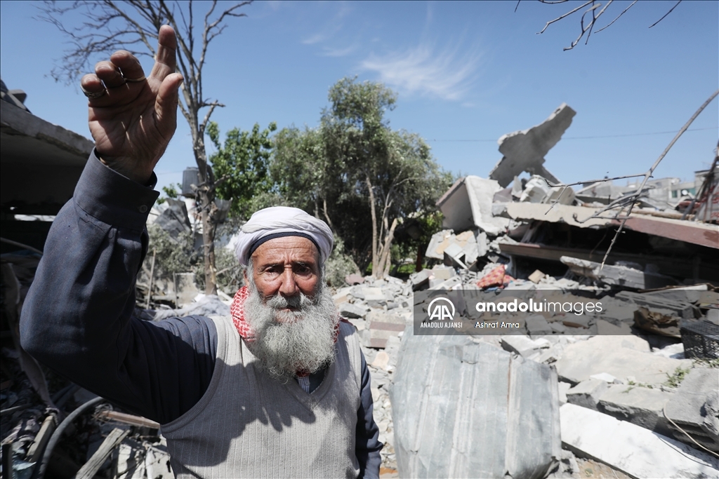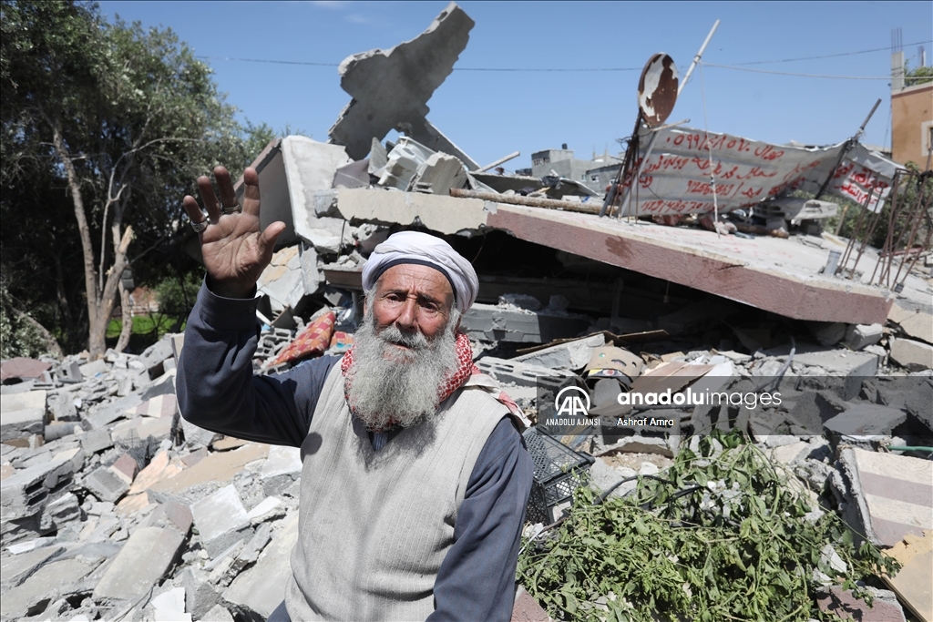 İsrail'in İslami Cihad Hareketinin yönetici kadrosunu hedef aldığını savunarak, 9 Mayıs'ta başlayan ve Gazze'nin çeşitli bölgelerine düzenlediği hava saldırılarında 6'sı çocuk, 3'ü kadın olmak üzere 33 kişi hayatını kaybetti, 32'si çocuk, 17'si kadın 93 Filistinli yaralandı. Ateşkesin ardından abluka altındaki Gazze Şeridi'nin farklı mahallelerindeki yıkılmış ve ağır hasar görmüş binalar görüntülendi. Evi yıkılan bir Filistinli, gözyaşlarını tutamadı. ( Ashraf Amra - Anadolu Ajansı )Ashraf Amra