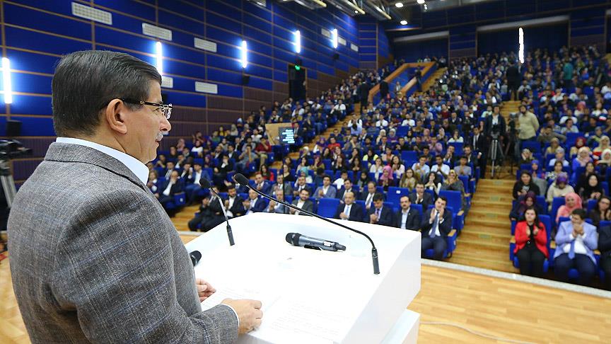 Davutoğlu, "Ne gencin tehlike olarak görülmesine izin vereceğiz, ne de gencin eline molotof kokteyli, mayın, silah, taş verip genci şiddetle terörle zehirleyenlere fırsat vereceğiz. Gencimiz geleceğe büyük ideallerle, rüyalarla, aşkla hazırlanacak" dedi.