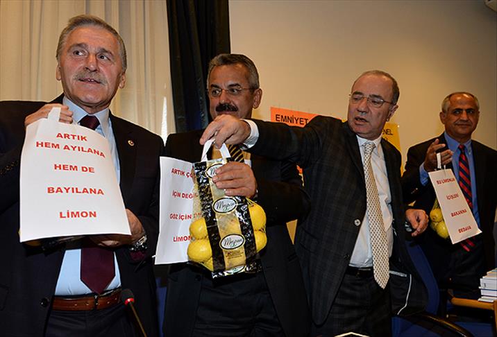CHP İstanbul Milletvekili Mevlüt Aslanoğlu, 2013 yılı bütçe kanunu tasarısının görüşmeleri öncesinde, ''limonlu'' protestoda bulundu.