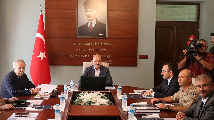 Basına kapalı gerçekleştirilen toplantıda, Bakan Soylu'nun Afrin ve İdlib bölgesi ile Amanoslarda yürütülen faaliyetler hakkında brifing aldığı öğrenildi.