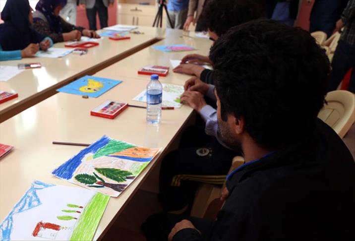 Diyarbakır Selahaddin Eyyubi Devlet Hastanesindeki sanat atölyesinde, psikiyatri hastalarına resim eğitimi veriliyor.