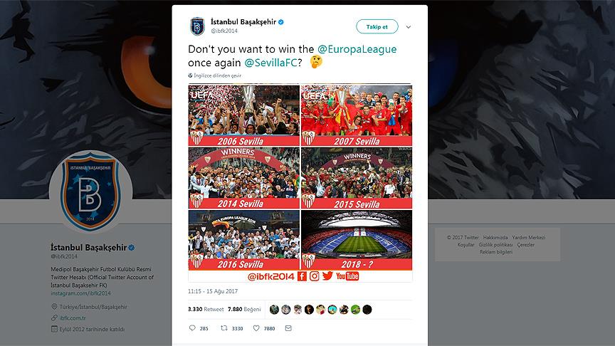 UEFA Şampiyonlar Ligi play-off turu ilk maçında yarın İspanya'nın Sevilla takımını konuk edecek Başakşehir Futbol Kulübü, rakibine esprili bir göndermede bulundu.