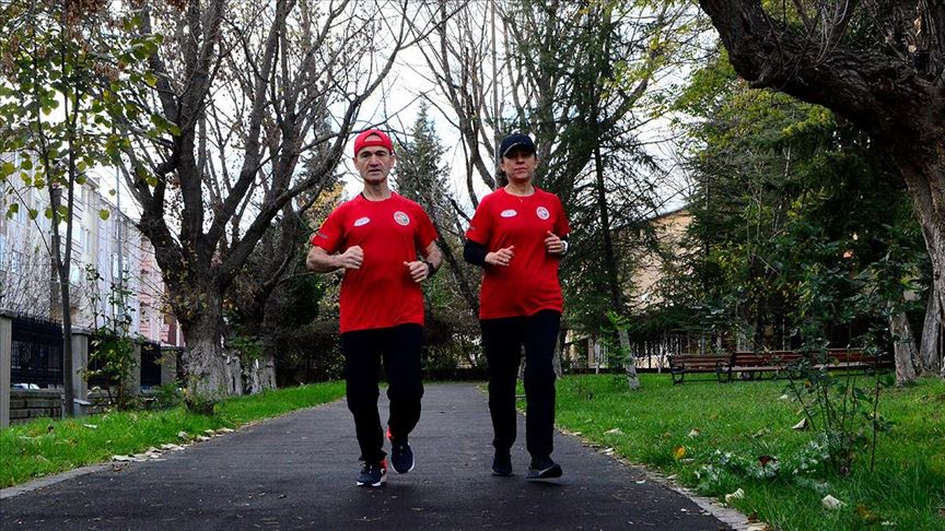 Haftada yaklaşık 100'er kilometre koşan çift, hem iş hem de spor hayatlarıyla herkese örnek oluyor.