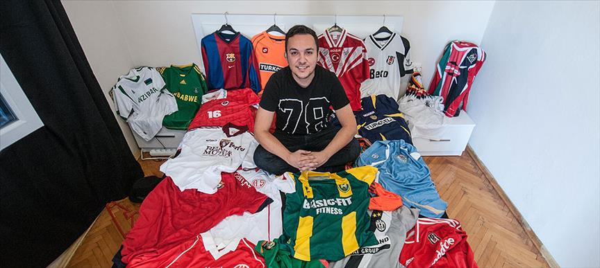 Antalyalı mimar 28 yaşındaki Kartal Mustafa Türker, Türkiye ve dünyadaki pek çok futbol takımına ait 700 formadan oluşan büyük bir koleksiyona sahip.