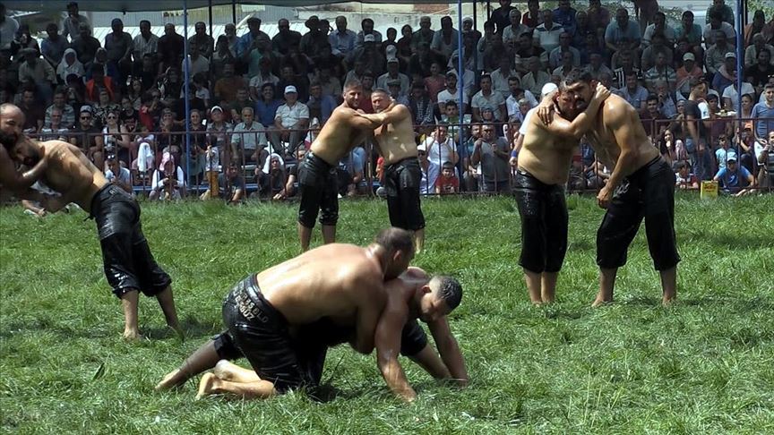 Geleneksel Yayla Seki Yağlı Güreşleri'nde kendi mücadelelerini unutup Kırkpınar başpehlivanı Ali Gürbüz'ün rakibi Yıldıray Akın ile güreşini izleyen 6 başpehlivanın oluşturduğu ilginç görüntü gülümsetti.