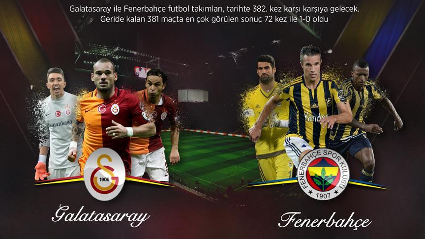 Galatasaray ile Fenerbahçe futbol takımları, Spor Toto Süper Lig'de yapacakları derbiyle tarihte 382. kez karşı karşıya gelecek.