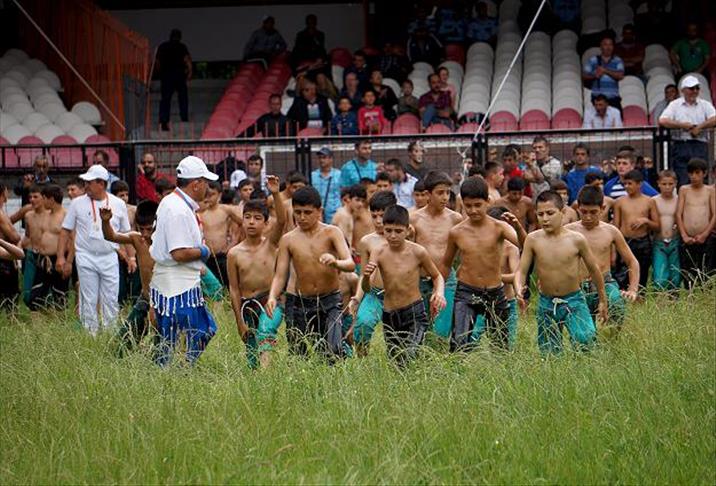 Edirne'de gerçekleştirilen 653. Tarihi Kırkpınar Yağlı Güreşleri, "minik 1" boydaki pehlivanların güreşiyle başladı.