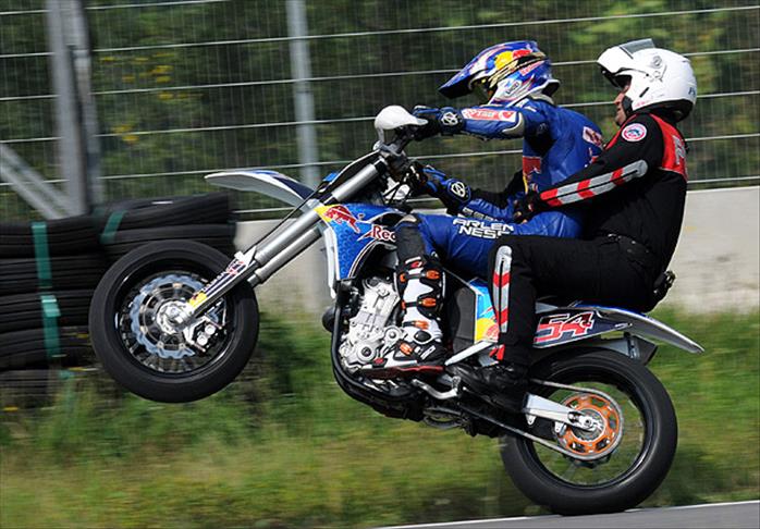 Memleketi Akyazı ilçesinde yaptırdığı pistte polis memurlarına ders veren Sofuoğlu, motosiklet kullanımının püf noktalarını da anlatıyor.