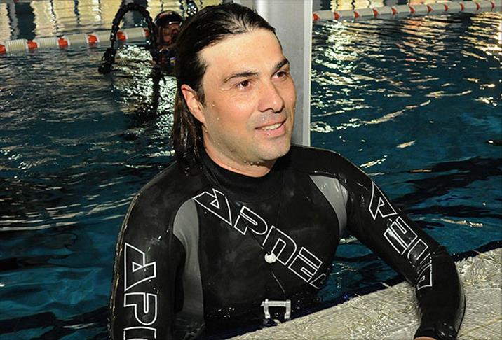 Sertan Aydın, Anafartalar Olimpik Yüzme Havuzu'nda Guinnes temsilcilerinin de katıldığı etkinlikte rekor denemesi gerçekleştirdi.