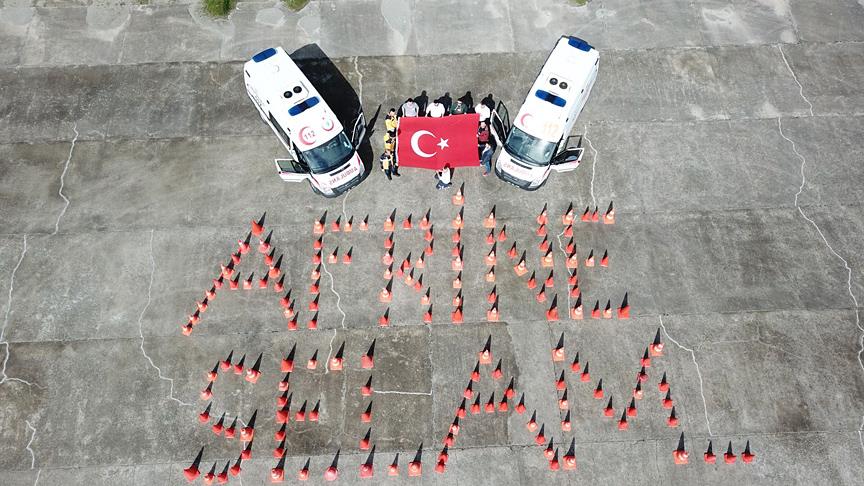 Personel, dubalarla "Afrin'e Selam" yazarak, Türk bayrağı açıp, 59 saniyelik bir görüntü çekti. Drone ile çekim yapılan videoda ambulanslar da yer aldı.