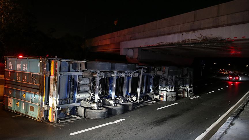 Bakırköy'de tır üst geçide çarptı: 1 yaralı