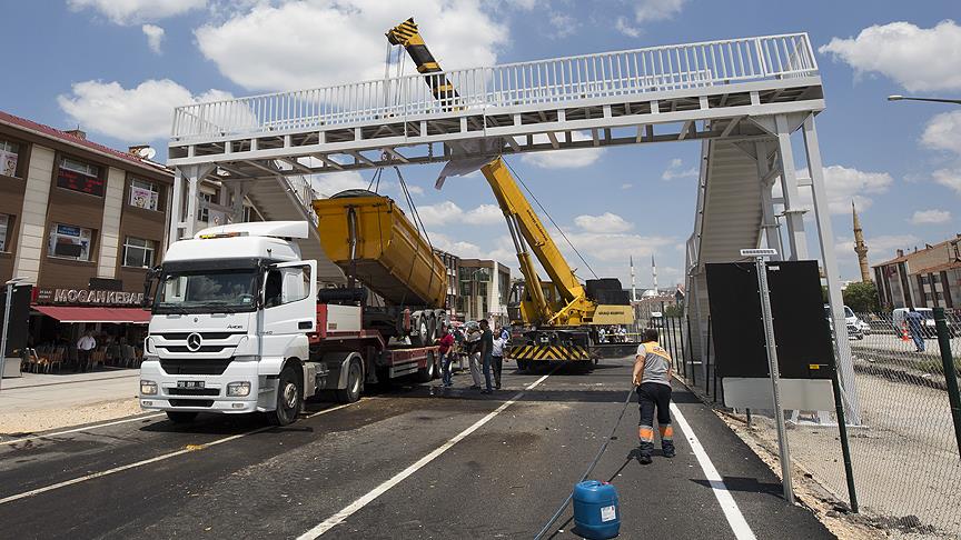 Ekrem Keskin idaresindeki 06 DVY 64 plakalı damperi açık unutulan hafriyat kamyonu, Ankara-Konya karayolunda üst geçide çarptı.