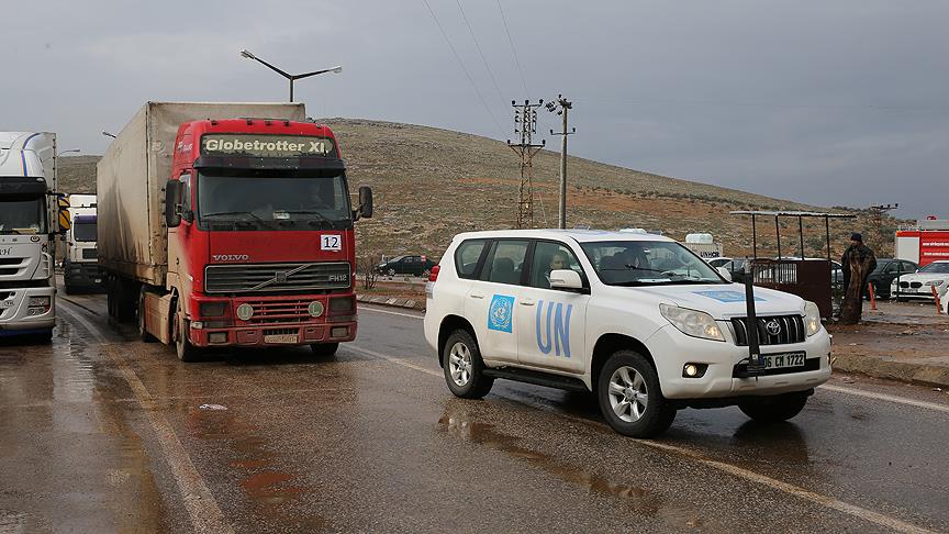 Birleşmiş Milletler (BM) adına yardım malzemesi taşıyan 21 tır, Cilvegözü Sınır Kapısı'ndan Suriye'ye geçti.