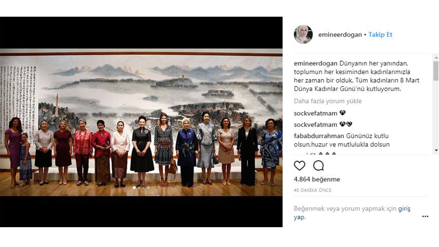 Cumhurbaşkanı Recep Tayyip Erdoğan'ın eşi Emine Erdoğan, ilk kez fotoğraf paylaştığı resmi Instagram hesabından 8 Mart Dünya Kadınlar Günü'nü kutladı.