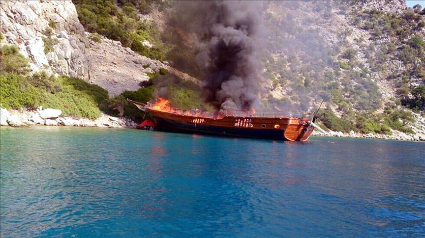 Marmaris'te tur teknesi yandı