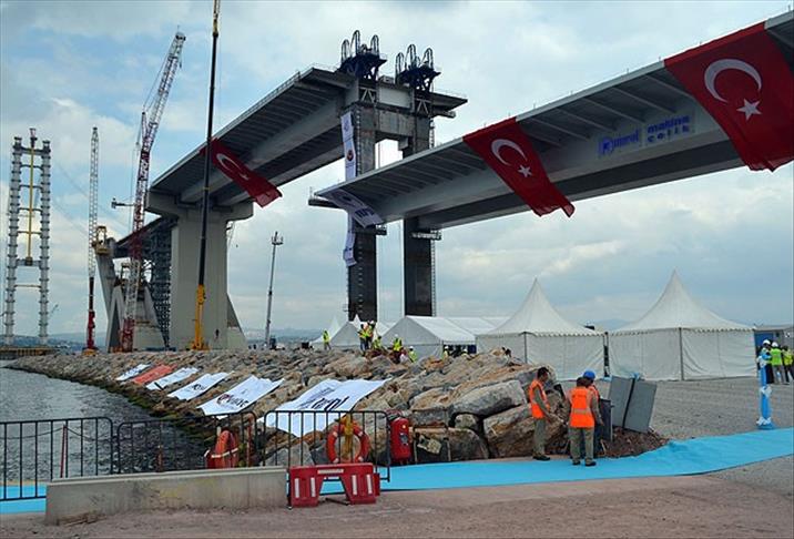 Gebze-İzmir Otoyolu Projesi kapsamında inşa edilen İzmit Körfez Köprüsü'nün 2 bin 600 tonluk en büyük parçası "ağır kaldırma" yöntemiyle yerleştirildi.