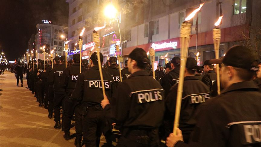 Polisler meşaleli ve atlı yürüyüş yaptı