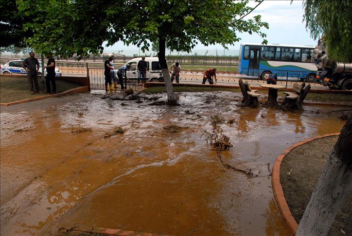 Rize Belediyesi ekipleri Boğaz Mahallesi'nin vanasını kapatıktan sonra temizlik işçileri tarafından Karadeniz Sahil Yolu ve caddelerin temizliği için çalışma başlatıldı.