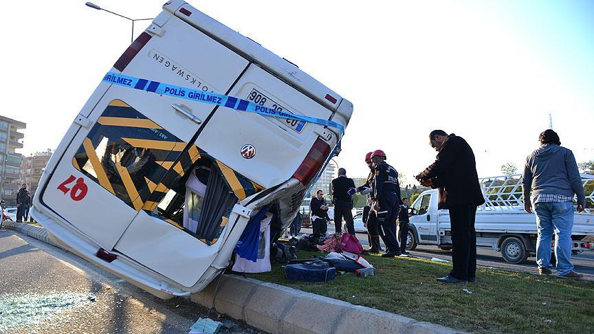 Alınan bilgiye göre, Şanlıurfa kent merkezindeki okullardan aldığı lise öğrencilerini taşıyan Mehmet Kaval yönetimindeki 03 BC 806 plakalı minibüs, merkez Karaköprü ilçesi Lunapark Kavşağı'nda refüje çarparak devrildi.