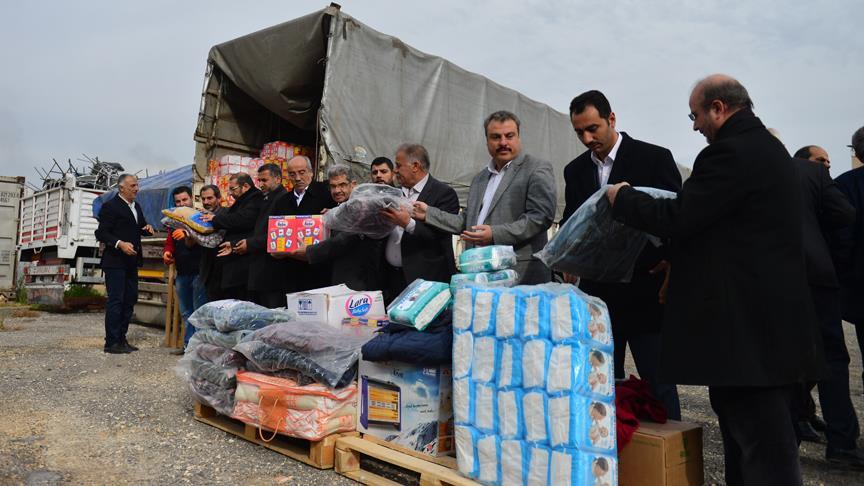 Şanlıurfa'da temin edilen 3 tır insani yardım malzemesi, Suriye'deki ihtiyaç sahiplerine gönderildi.