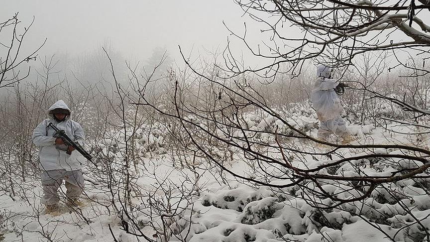 Sıfırın altında 13 dereceye varan soğukta ve zorlu arazide operasyonların başarıyla sürdürüldüğü fotoğraflara yansıdı.