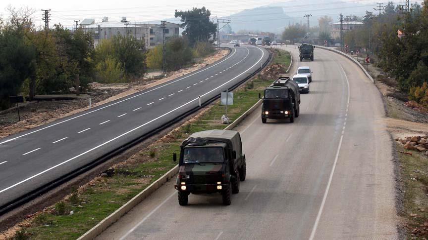 Takviye olarak gönderilen, aralarında askeri malzeme taşıyan kamyonların da bulunduğu araçlar, güvenlik önlemleri altında Suriye sınırındaki birliklere ulaştırıldı.