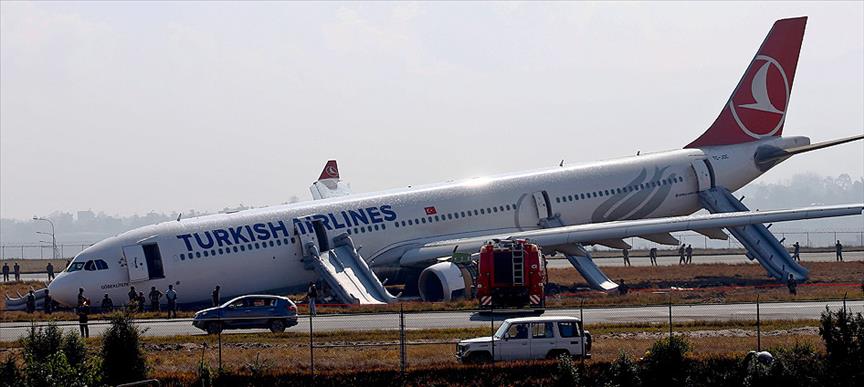 THY'den yapılan açıklamada, İstanbul'dan Nepal'in başkenti Katmandu'ya giden TK 726 sefer sayılı, 224 yolcusu ve 11 mürettebatı bulunan uçağın, inişten sonra pistten çıktığı belirtildi.