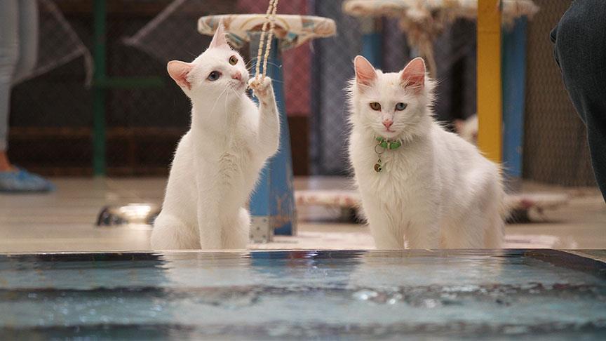 Her gün görevliler tarafından bakımları özenle yapılan kedilerin havuzda yüzmesi ziyaretçilerin ilgisini çekiyor.