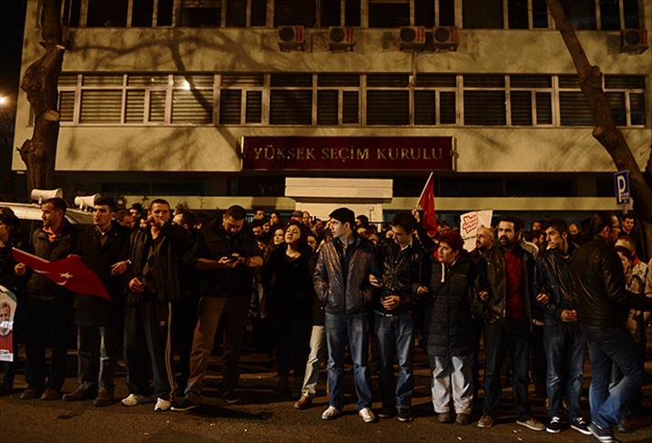 Bir grup, Ankara Büyükşehir Belediye Başkanlığı seçimi sonuçlarını Yüksek Seçim Kurulu (YSK) önünde protesto etti.