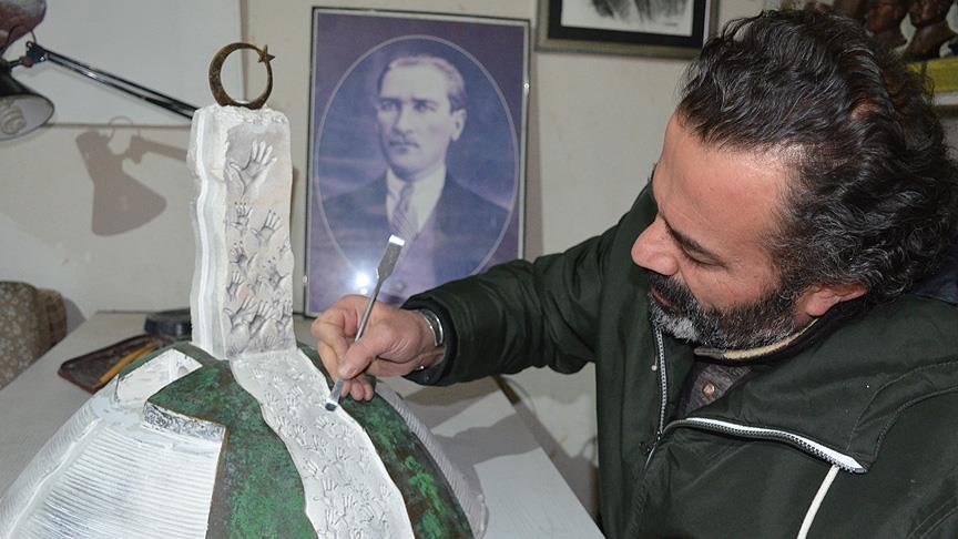 Malatya'da yaşayan heykeltıraş Cengiz Göğebakan, Türk halkının Fetullahçı Terör Örgütü'nün (FETÖ) 15 Temmuz darbe girişimini engellemesini ve şehitleri anlatan prototip anıt tasarladı.