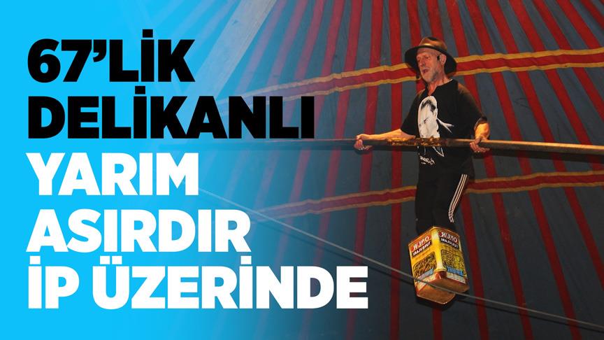 Hayatının büyük bir bölümünü ip üzerinde geçiren 67 yaşındaki Özdemir Turan, çocukken başladığı "ip cambazlığı" mesleğini ilerleyen yaşına rağmen 51 yıldır sürdürüyor.