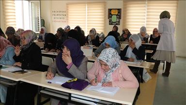 Yalova'da okuma yazma kursuna katılan 92 yaşındaki Saniye Göre, sertifikasını aldı.