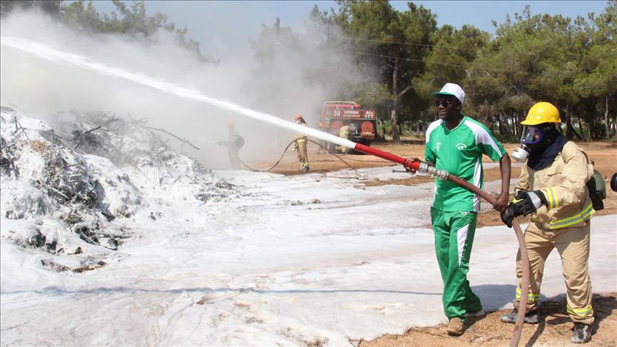 Konya ve Mersin'de planlanan 5 günlük eğitim için gelen Pan Afrika Büyük Yeşil Duvar Ajansı üyesi ülkelerin ormancıları, Erdemli ilçesinde yangın tatbikatına katıldı.