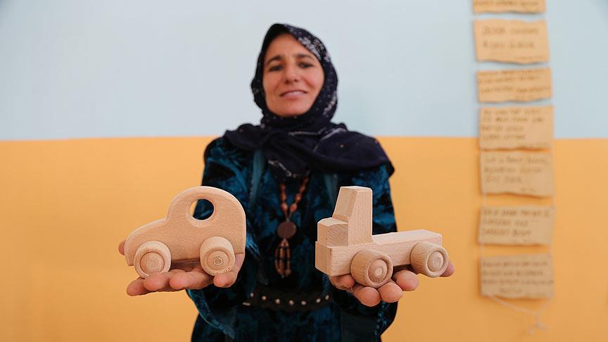Şanlıurfa'nın Harran ilçesinde yaşayan Türk ve Suriyeli kadınlar, geleneksel ahşap oyuncakların yapımını öğreniyor.