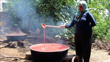 Yerden 3 metre yüksekliğindeki evde yazları vakit geçiren Topak, bahçesinde ise sebze ve meyve yetiştiriyor.