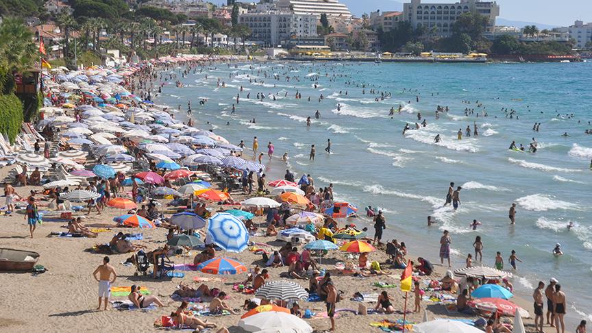 Kuşadası'nda yerli ve yabancı turistler, Kadınlar Denizi başta olmak üzere Milli Park, Sevgi ve Kuştur gibi plajlara akın etti. İlçede bulunan çok sayıda su parkı da vatandaşlardan ilgi gördü.