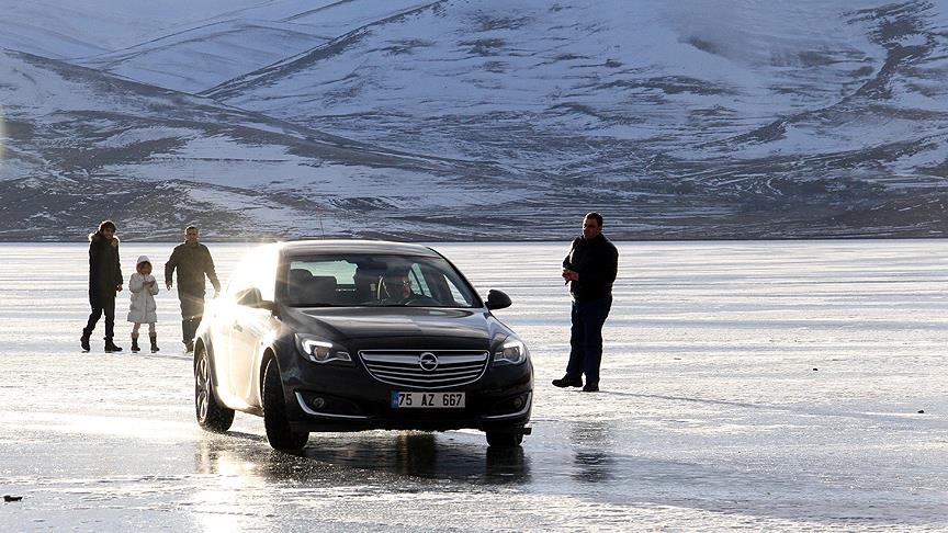 Doğu Anadolu'nun tek tatlı suyuna sahip 124 bin metrekare yüz ölçümüyle ikinci büyük gölü Çıldır üzerinde yürüyüş yapanlara, atlı kızak gezilerine katılanlara ve otomobiliyle gösteri yapanlara da rastlanıyor.