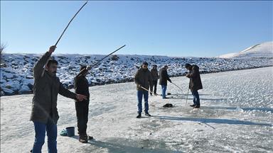 Hava sıcaklığının zaman zaman sıfırın altında 20 dereceye kadar düştüğü Ardahan'da, yüzeyi 20 santimetre buz tabakasıyla kaplanan Çıldır Gölü, farklı güzellikler ve heyecanlar sunuyor.