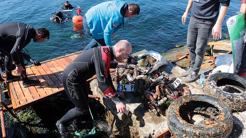 Kartal Sahili'nde, Dünya Su Günü kapsamında gerçekleştirilen temizlik çalışmasında, denizden araba lastiği, plaka, ruhsat ve ehliyetin de aralarında bulunduğu atıkların çıkarılması görenleri şaşırttı.